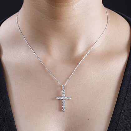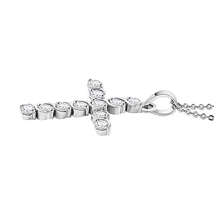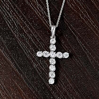 J Francis - Swarovski Zirconia Cross Pendant with Chain (Size 20) in Rhodium Overlay Sterling Silver 1.65 Ct.