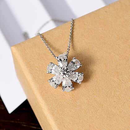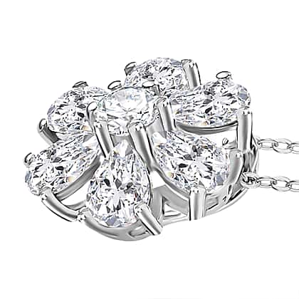 J Francis - SWAROVSKI ZIRCONIA Floral Pendant with Chain (Size 20) in Rhodium Plated Sterling Silver 4.59 ct.