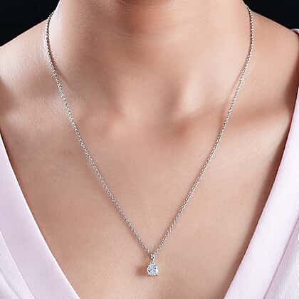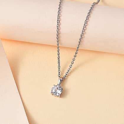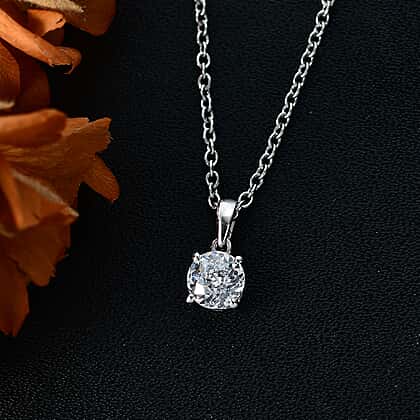 J Francis - Swarovski Zirconia Solitaire Pendant with Chain (Size 20) in Platinum Overlay Sterling Silver 1.43 Ct.