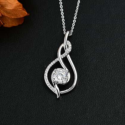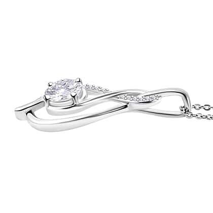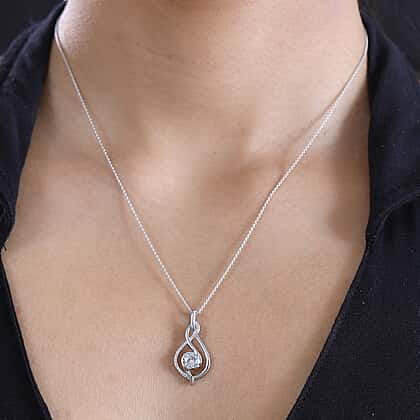 J Francis - Swarovski Zirconia Twist Pendant with Chain (Size 20) in Rhodium Overlay Sterling Silver 1.54 Ct.