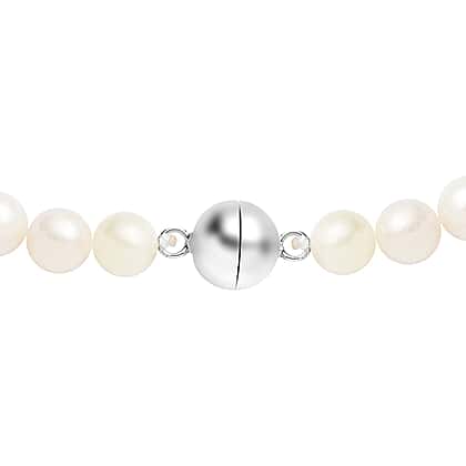 Japanese Akoya Pearl Beads Necklace (Size - 20) with Magnetic Lock in Rhodium Overlay Sterling Silver