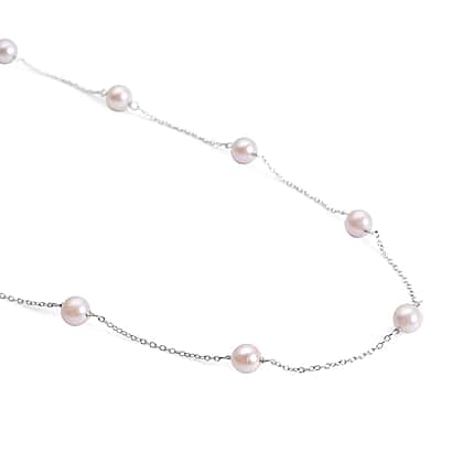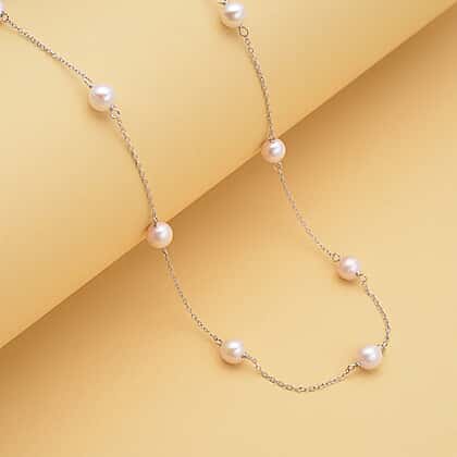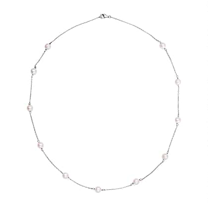 Japanese Akoya Pearl Station Necklace (Size - 20) in Rhodium Plated Sterling Silver