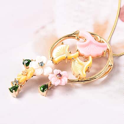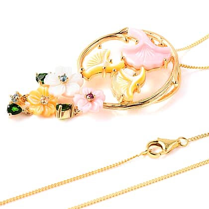 Jardin Collection Pink Mother of Pearl and Multi Gemstone Floral Pendant with Chain in Gold Plated Sterling Silver 18 Inch