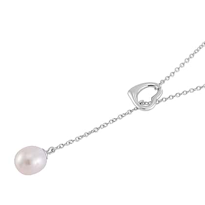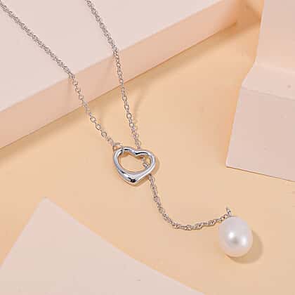 The playfulness of a heart motif meets pearl-inspired elegance in this Designer-Inspired White Freshwater Pearl Toggle Necklace. Measuring 20 inches, the necklace is crafted from rhodium overlay sterling silver, which lends it a long-lasting and tarnish-resistant shine. Inspired by the lariat design that usually features a loop and a linear drop, the necklace has a heart charm in place of the loop. The drop features a 10-11mm white freshwater pearl that evokes classic charm.