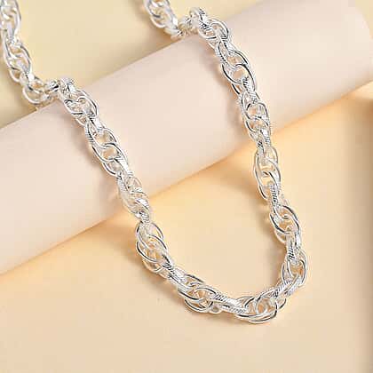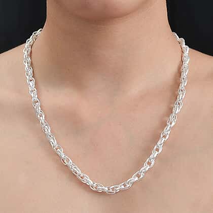 This Sterling Silver Prince of Wales Necklace radiates an air of understated elegance with its loose rope design and sparkling finish. The chain, inspired by royalty, rests a few inches below the collarbone. It is fitted with a snag-resistant lobster clasp that keeps the necklace secure. Silver lets you effortlessly transition from day to night, adding a touch of elegance to any ensemble.