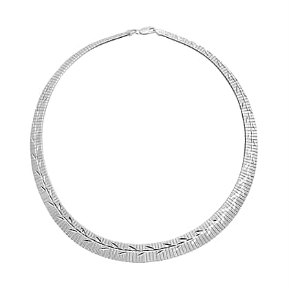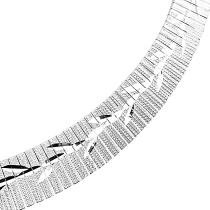 JCK Vegas Collection Rhodium Plated Sterling Silver Leaves Pattern Cleopatra Necklace (Size 17),With Lobster Clasp Silver wt 25.70 Gms.