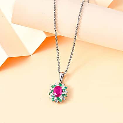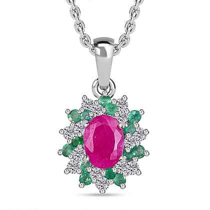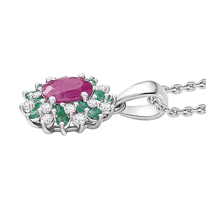John Saul Natural Ruby, Emerald and Moissanite Pendant with Chain (Size 20) in Rhodium Overlay Sterling Silver 2.53 ct.