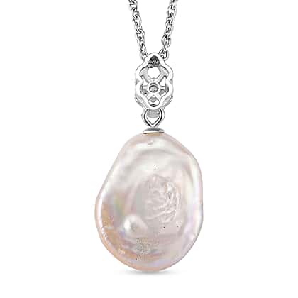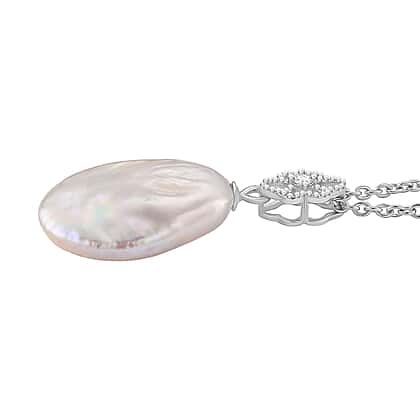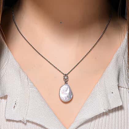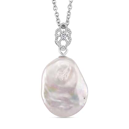 Keshi Pearl & White Cubic Zirconia Pendant with Chain (Size 20) with Lobster Clasp in Rhodium Overlay Sterling Silver 8.02 Ct.