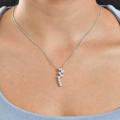 Lab Grown Diamond Pendant with Chain (Size 20) in Rhodium Overlay Sterling Silver 0.39 ct 0.510 Ct.
