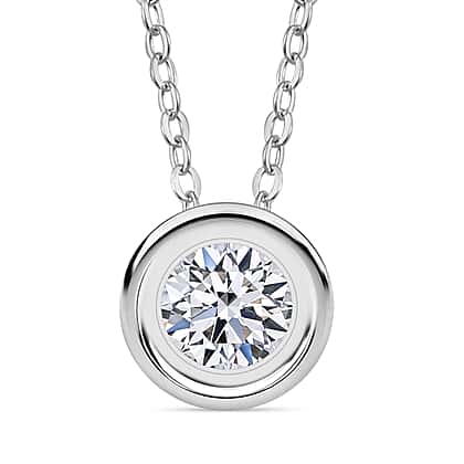 Lab Grown Diamond (SI-GH) Pendant with Chain (Size 20) in Rhodium Overlay Sterling Silver