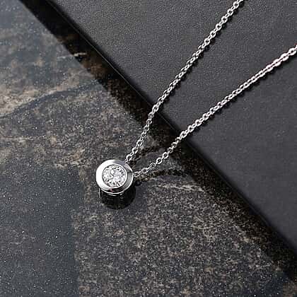 LUXURIANT 0.25 Ct. Lab Grown Diamond Solitaire Pendant with Chain in Rhodium Overlay Sterling Silver, 20 Inch