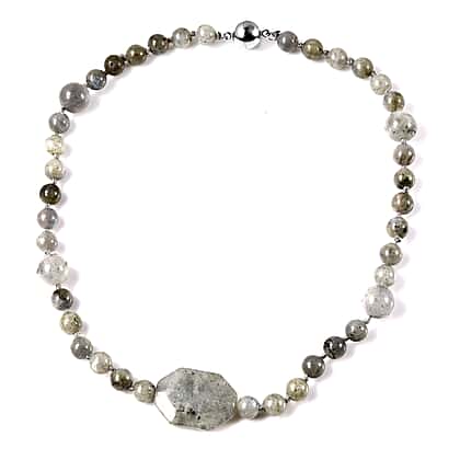 258.5 Ct. Labradorite Beaded Necklace in Silver Tone 18 Inches
