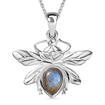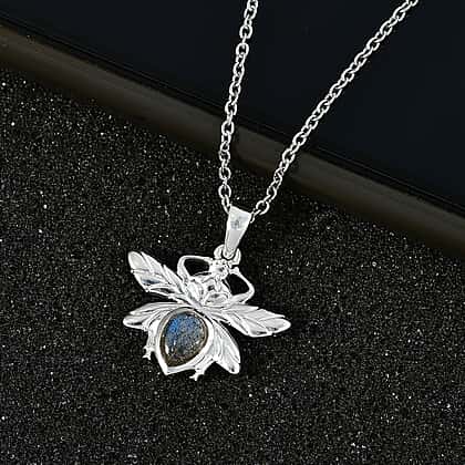 Labradorite Dragon Fly Solitaire Sterling Silver Pendant with Chain (Size 20)