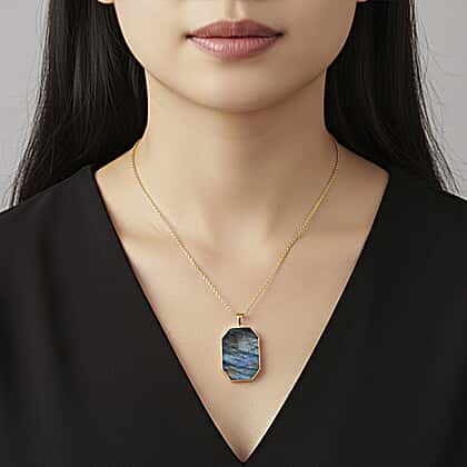 Labradorite Pendant with Chain (Size 20) Pure White Stainless Steel 20.000 Ct.