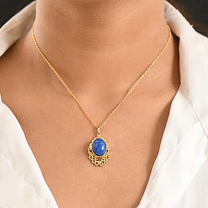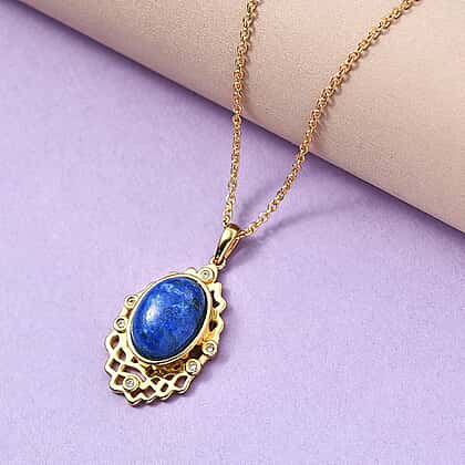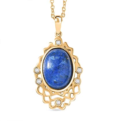 Lapis Lagoon & White Zircon Pendant with Chain (Size - 20) in Yellow Gold Tone 7.12 Ct.
