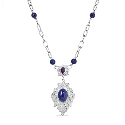 14.13 Ct. Lapis Lazuli, Amethyst Necklace Size 18 in Silver Tone