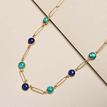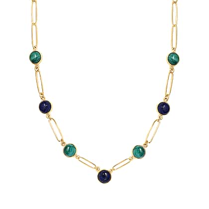 12.87 Ct. Lapis Lazuli and Malachite Necklace in 14K Gold Plated Sterling Silver