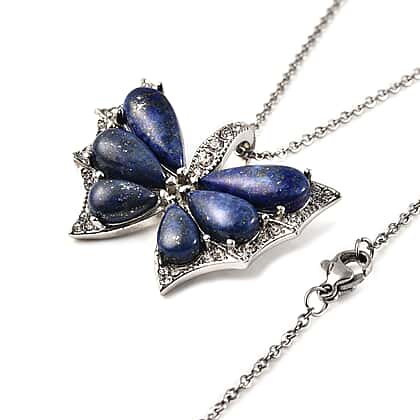 15.75 Ct. Lapis Lazuli and White Austrian Crystal Butterfly Pendant with Chain Size 20 in Stainless Steel