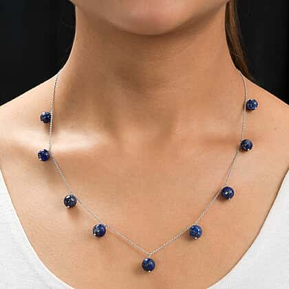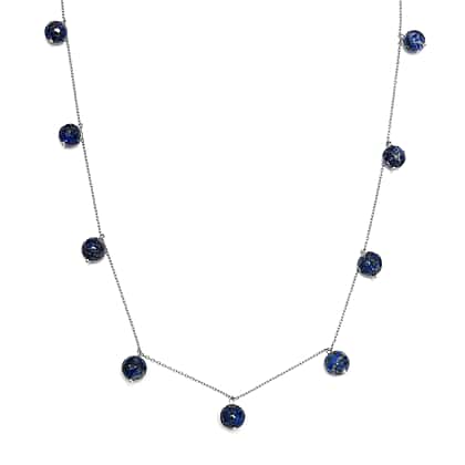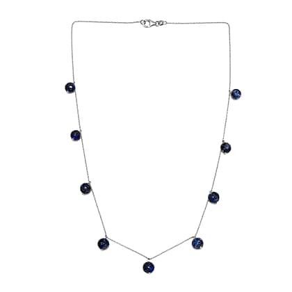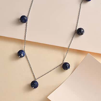 Lapis Lazuli Ball Necklace (Size - 18) in Rhodium Overlay Sterling Silver 45.00 Ct