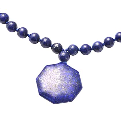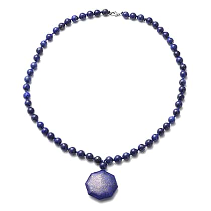 Lapis Lazuli Beads Necklace (Size - 20) in Platinum Overlay Sterling Silver 299.00 Ct.