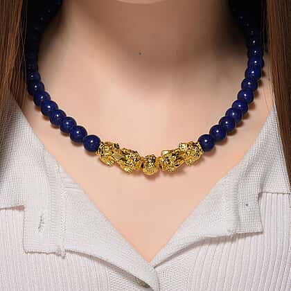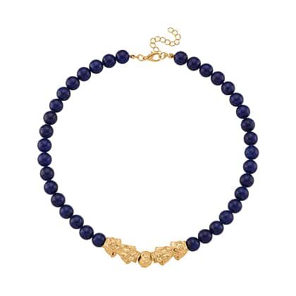 Lapis Lazuli Beads & Pixiu Necklace (Size 18 - 2 Ext) in Yellow Gold Plated 330.00 Ct.