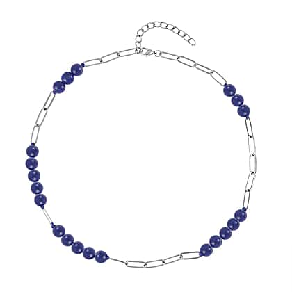Lapis Lazuli Necklace (Size - 18 with 2 Inch Extender) in Silver Tone