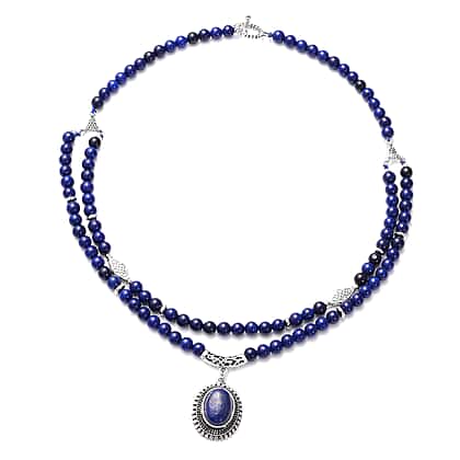 - GEMSTONE CUT AND CARAT: The beads are carved from lapis lazuli. The lapis lazuli pendant is cut in oval shape for a classic appeal