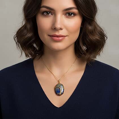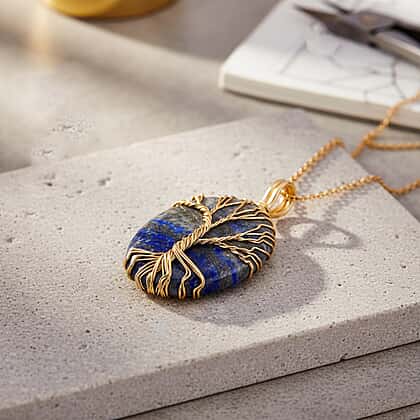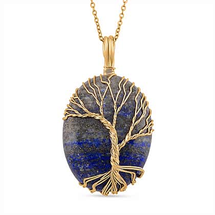 Lapis Lazuli Oval Ethereal Tree of Life Pendant with Chain (Size 20 - 2 Ext) 20.00 Ct.