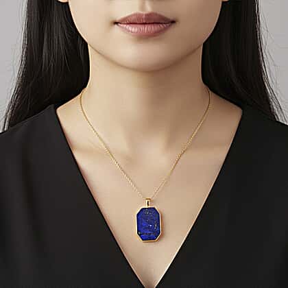 Lapis Lazuli Pendant with Chain (Size 20) Pure White Stainless Steel 20.000 Ct.