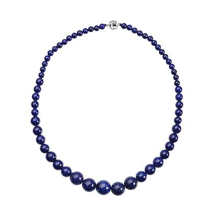 359.50 Ct Lapis Lazuli Beaded Necklace with Magnetic Lock in Rhodium Plated Silver 20 Inch