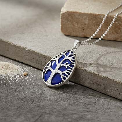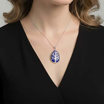 Lapis Lazuli Tree of Life Pendant with Chain (Size 20-2 Ext) in Silver Tone 22.00 Ct.