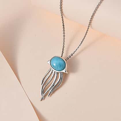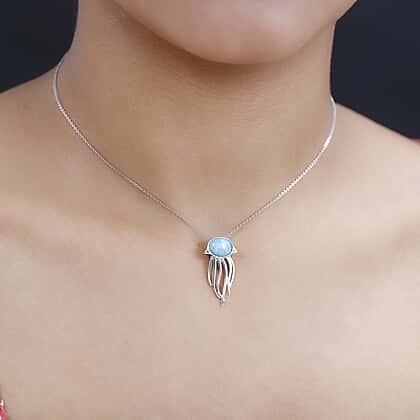 Larimar Solitaire Jellyfish Pendant with Chain (Size 20) in Platinum Overlay Sterling Silver 2.15 Ct.