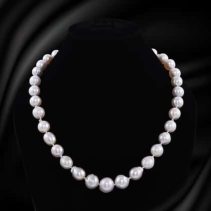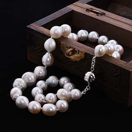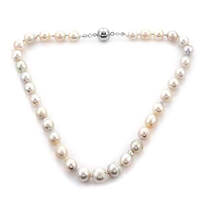South Sea White Pearl Beaded Necklace in Sterling Silver 20 Inches
