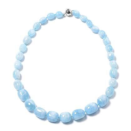 Sao Domingos Aquamarine Beaded Necklace with Magnetic Lock in Rhodium Plated Sterling Silver 20 Inch