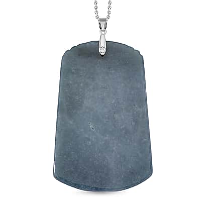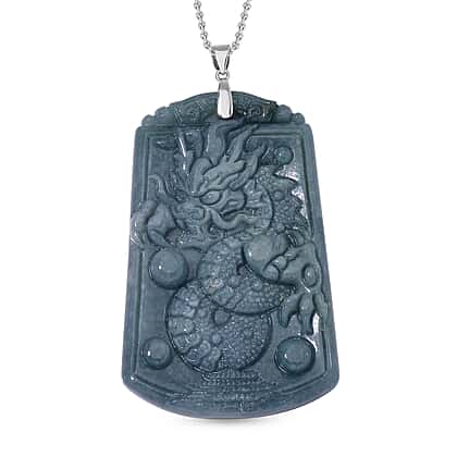 Limited Edition Natural Type A Olmec Jadeite Carved Dragon Pendant with Chain (Size 20) in Rhodium Overlay Sterling Silver 175 Ct.