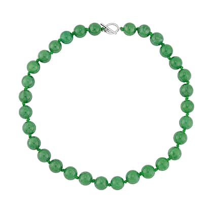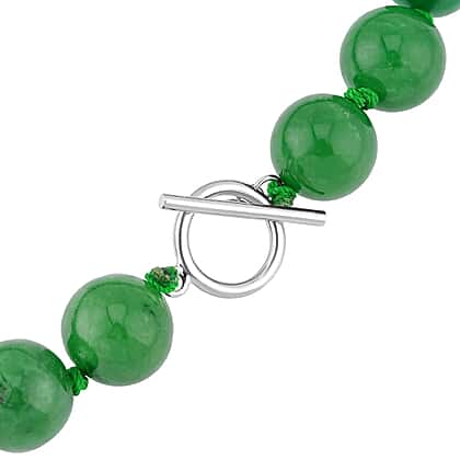 Limited Green Jade Necklace (Size - 20) with T-Bar Clasp in Rhodium Overlay Sterling Silver 684.00 Ct.