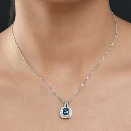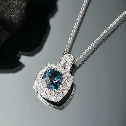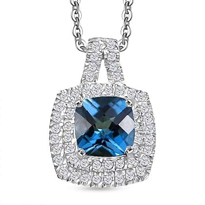 London Blue Topaz & White Zircon Pendant with Chain (Size 20) in Rhodium Overlay Sterling Silver 2.59 Ct.