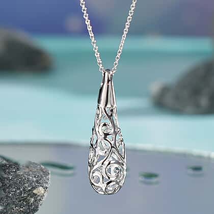 Lucy Q Air Drip Filigree Collection - Rhodium Overlay Sterling Silver Pendant with Chain (Size - 18-22-28), Silver Wt. 8.70 GM