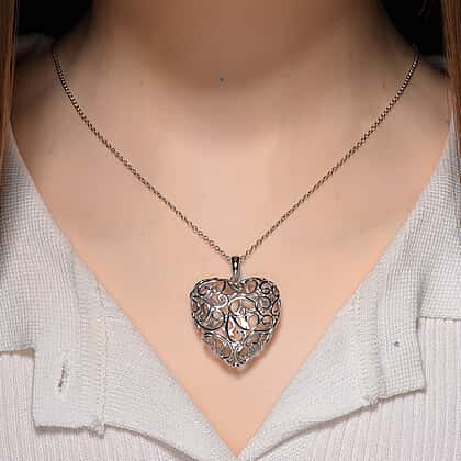 LUCY Q Amore Filigree Collection - Heart Pendant with Adjustable Chain (Size 28-24-20-16) in Rhodium Overlay Sterling Silver