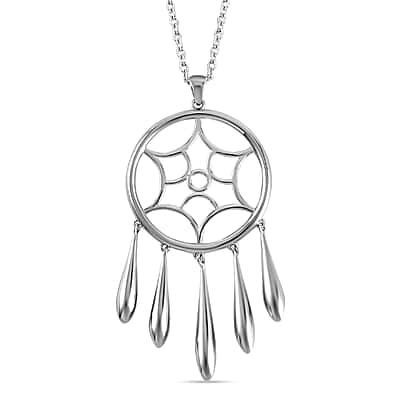 Lucy Q Dream Catcher Collection - Platinum Overlay Sterling Silver Dream Catcher Pendant with Chain (Size 20)