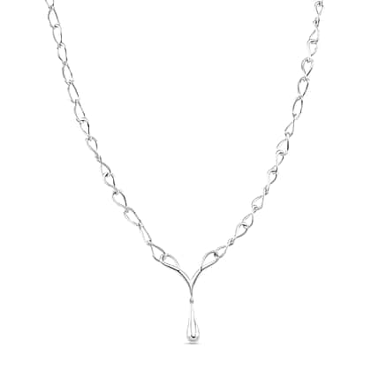 LUCY Q Drip Collection - Rhodium Overlay Sterling Silver T-Bar Clasp Drop Necklace (Size 18)