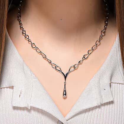 Lucy Q Drip Collection - Rhodium Overlay Sterling Silver T-Bar Clasp Necklace (Size 18), Silver Wt. 15.00 Gms.