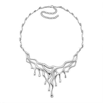 Lucy Q Drip Necklace (Size - 16-4 EXT) with Lobster Clasp in Rhodium Overlay Sterling Silver, Silver Wt. 60.00 Gms