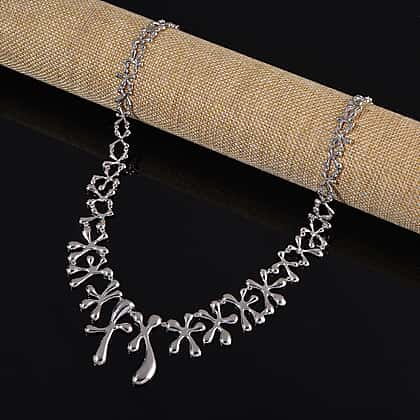 Discover a graceful statement necklace that brings refined shine and detailed design to the neckline. Crafted in sterling silver with a rhodium overlay, this Lucy Q piece features flowing vine inspired links set with sparkling stones that catch the light from every angle. The layout sits neatly along the collar line, creating a full and balanced look without feeling heavy. An adjustable chain allows flexible wear, making it easy to style with evening outfits or occasion dressing. A polished finish completes the piece with a bright, mirror-like glow.