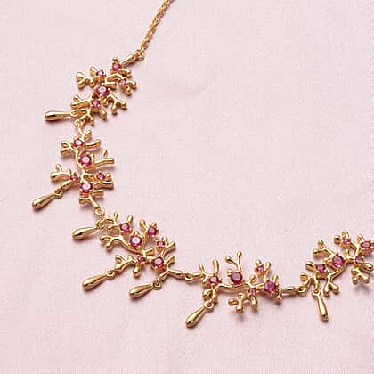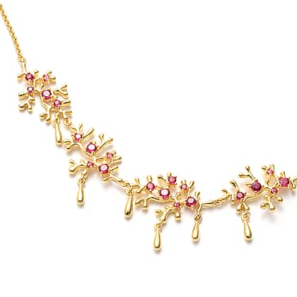 Lucy Q Splash Collection - African Ruby (FF) Necklace (Size:16 with 4 inch Extender) in Yellow Gold Overlay Sterling Silver 2.56 Ct, Silver wt. 18.38 Gms