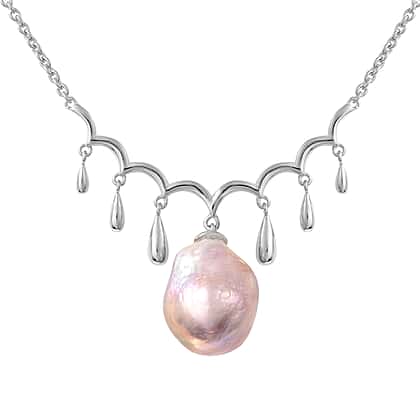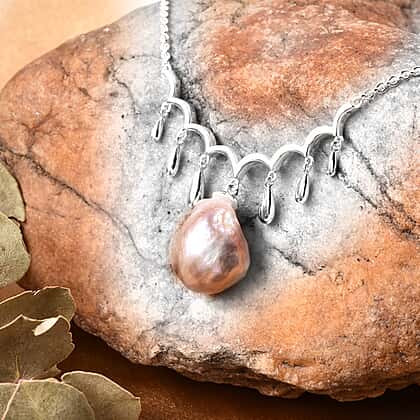 LucyQ - Baroque Freshwater Pearl Necklace (Size 20) in Rhodium Overlay Sterling Silver