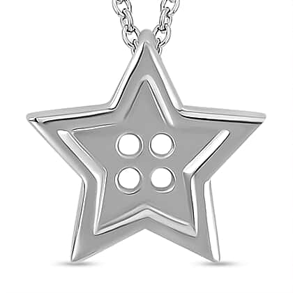 LucyQ Button Collection - Rhodium Overlay Sterling Silver Star Pendant with Chain (Size -18-20),