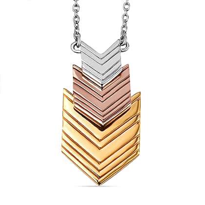 LucyQ Close Out Deal - Arrow Collection - Rhodium Overlay Sterling Silver Necklace (Size - 16 with 2 Inch Extender) in Tri Tone.