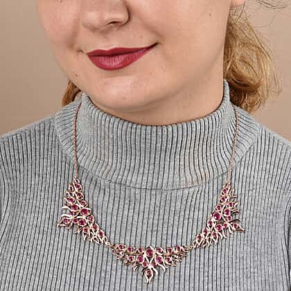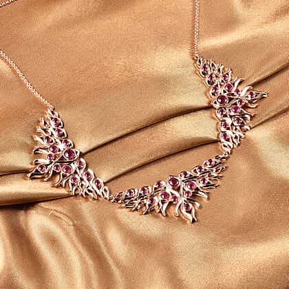 LucyQ Flame Collection - African Ruby (FF) Necklace (Size 20) in Rose Gold Overlay Sterling Silver 10.23 Ct, Silver Wt 34.03 Gms