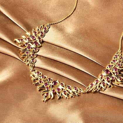 LucyQ Flame Collection - African Ruby (FF) Necklace (Size 20) in Yellow Gold Overlay Sterling Silver 10.23 Ct, Silver Wt 33.54 Gms